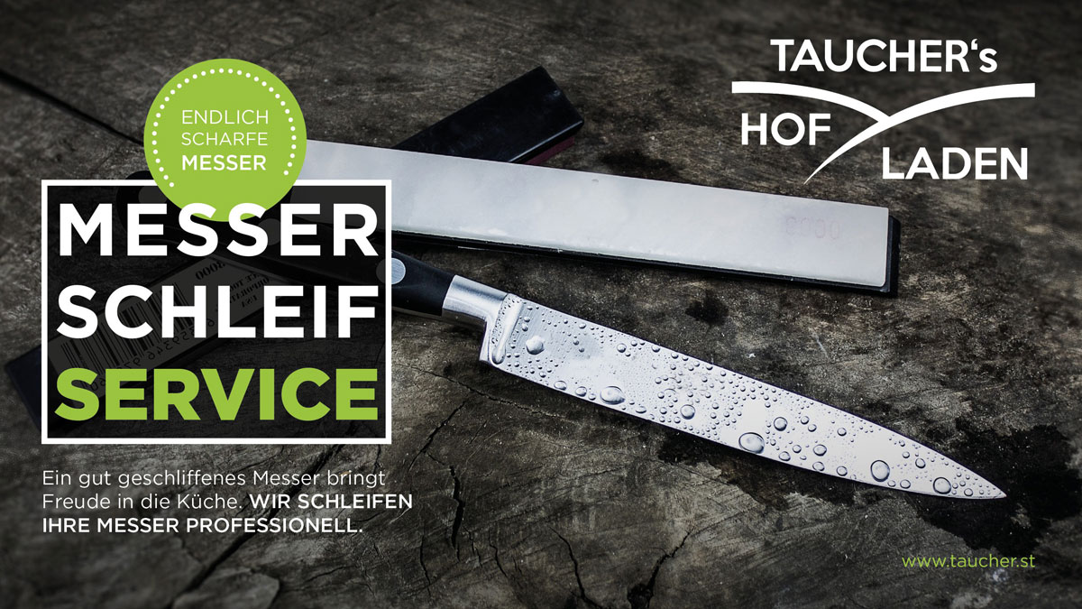 Für ein perfektes Schnitterlebnis ist ein scharfes Messer unerlässlich. Deshalb bieten wir Ihnen jetzt einen professionellen Messerschleif-Service an. Für mehr Informationen zu diesem Service besuchen Sie uns während unserer Öffnungszeiten oder kontaktieren Sie uns telefonisch. Wir beraten Sie gerne und sorgen dafür, dass Ihre Messer wieder bestens schneiden.